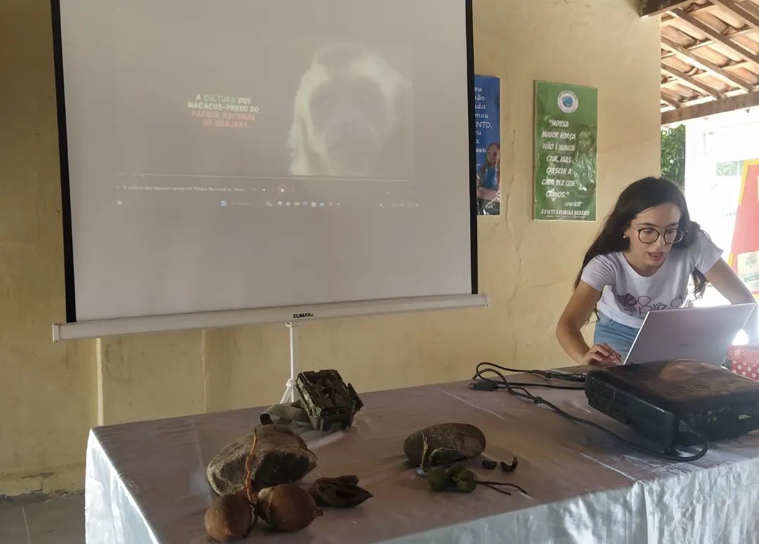 Through lectures and visits to local communities, we show videos produced during our research and bring tools used by the monkeys. The goal of these activities is for people to learn about and better understand the behavior of primates and other animals that inhabit the region. Visits to schools are especially important because many children and teenagers who live near these primate populations have never seen these animals. By showing these videos, we seek to promote the region’s fauna and discuss with students how we can conserve it.